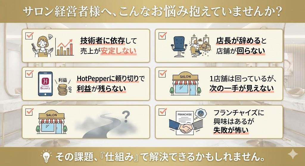 A. はい、全く問題ありません。オーナー様の役割は「施術」ではなく「経営マネジメント」です。現場の運営や施術は有資格者のスタッフが行います。美容業界未経験から参入し、複数店舗を展開されているオーナー様も多数いらっしゃいます。